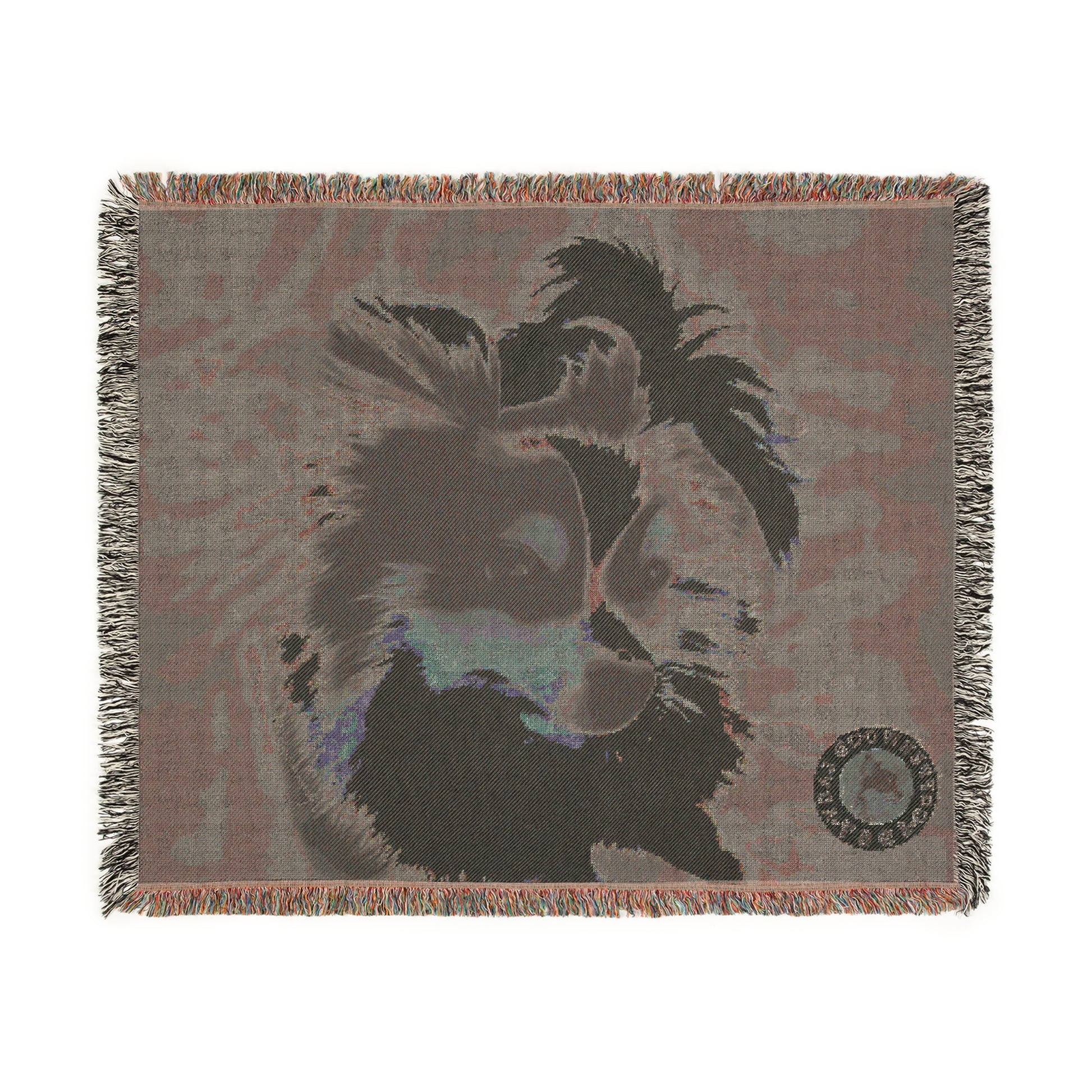 Enjoy our artist's sweet design of the little fur baby Stormy, this adorable Pomeranian graces this cozy quality heirloom blanket. These cozy throw-sized woven blankets are woven out of 100% cotton yarn with a colorful edge fringe that extends the image.